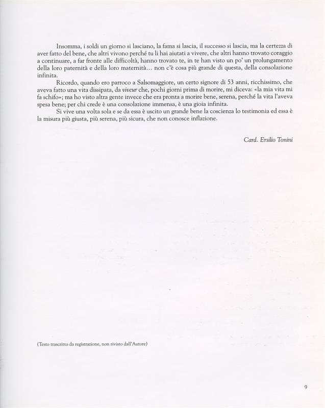 Lettera di ringraziamento del Cardinale Ersilio Tonini